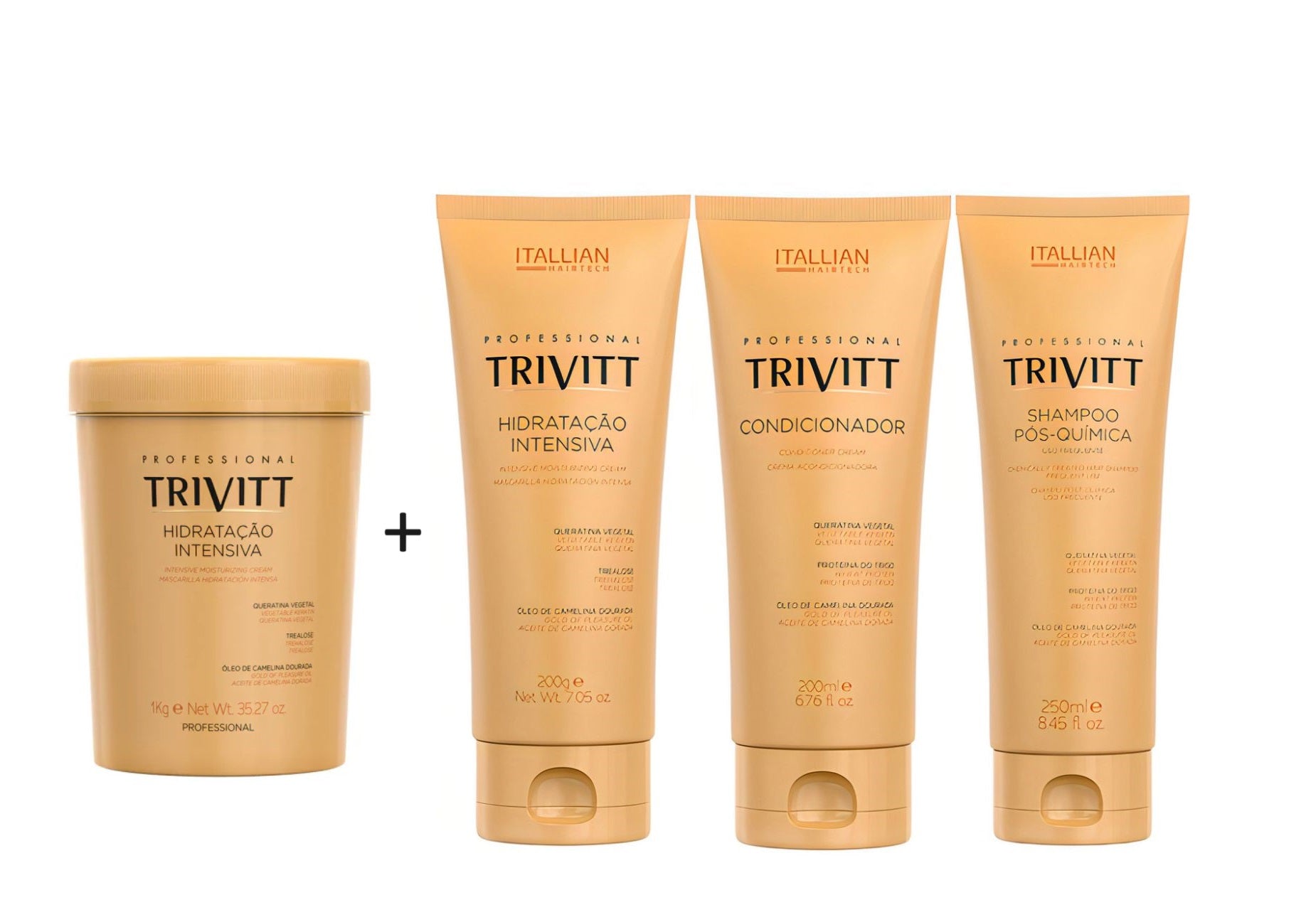 Trivitt Hair Care Kit 4 Pieces - Trivitt Intensive Hydration Mask - 1 Kg, Hair Care Shampoo 250mL, Conditioner 200mL and Leave-In cream 200g