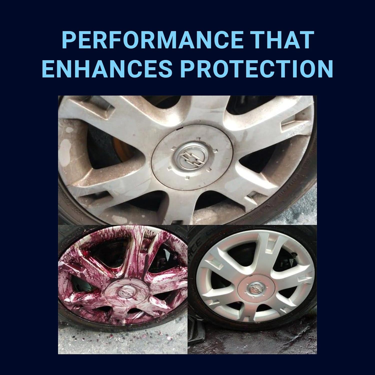 โข Acid-based concentrated formula for aluminum and metallic wheels